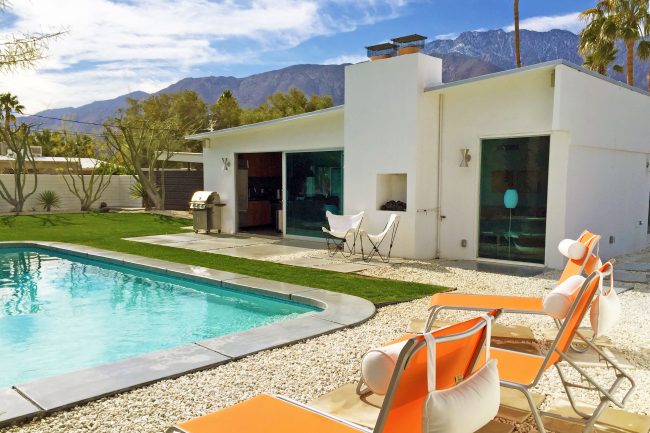 Welcome to Starr Palm Springs! This spectacular home in historic Racquet Club Estates was designed by renown architect William Krisel and built in 1959 by the Alexander Construction Company. Recently renovated by mid-century enthusiasts Lance & Jamie Huante who honored Mid-Century Modern standards and commissioned nationally-published interior designer Christopher Kennedy for a quintessential interior aesthetic, this home is the perfect backdrop for a flashback trip to Palm Springs with all the modern conveniences. The colorful redesign captures the essence of the home’s heyday in feel, color and texture, punctuated with memorabilia and reminders of its Hollywood pedigree.
